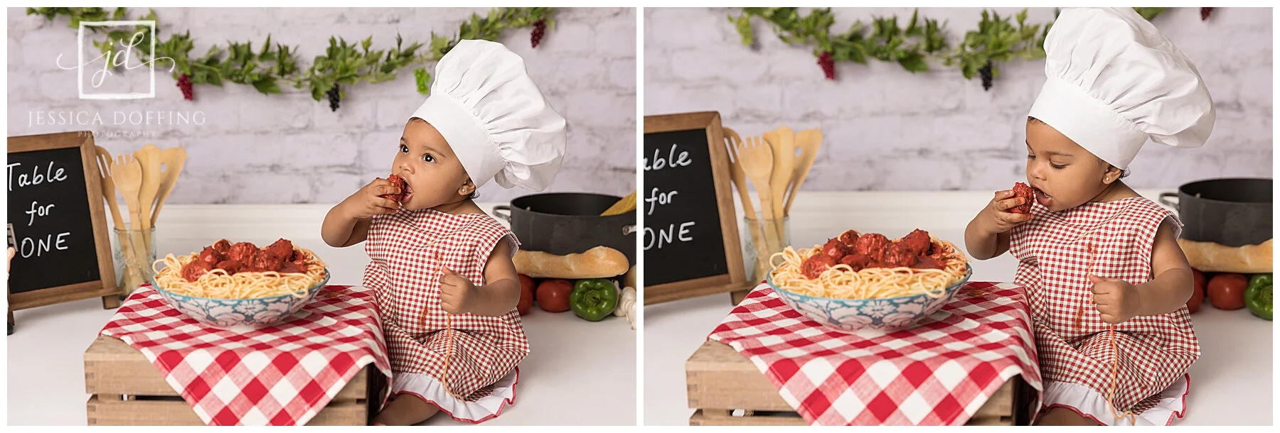 I’m pretty sure Anaya’s parents and I chose this theme back in January during her Tummy Time milestone session. I’ve waited a long 8 months for this fun cakesmash alternative. I can’t think of anything that would be messier than spaghetti for a photoshoot so I was super excited for this one.
