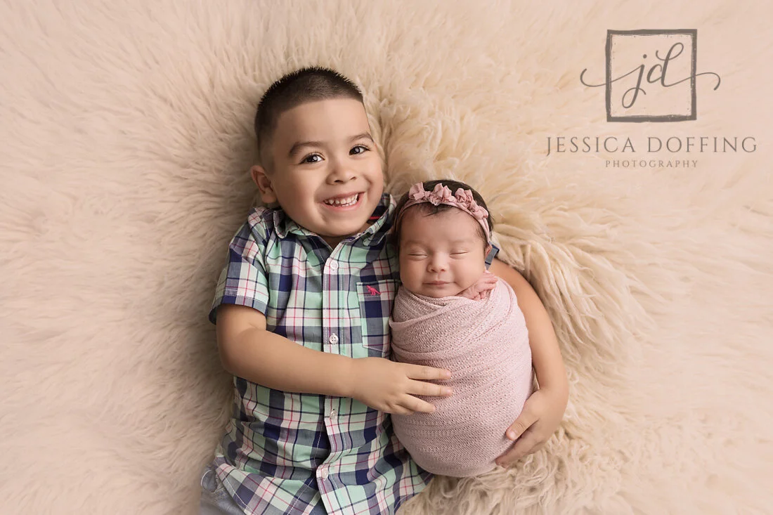 What if I have older children I want in some photos? If you have older siblings that will be involved in the photos I try to get those done at the beginning of the session. If the sibling needs more time to warm up to the idea, we may start with just the baby. After the sibling is finished with their photos I ask that a family member either take them back home, to a park, or out to lunch for a special treat. It gets reallllly boring for the kiddos. In most cases, trying to occupy a restless toddler/child is stressful and we don’t want that during your session. If taking the sibling away is not an option, I do have a small area with a tv and room to play, but s/he will need to be supervised at all times.